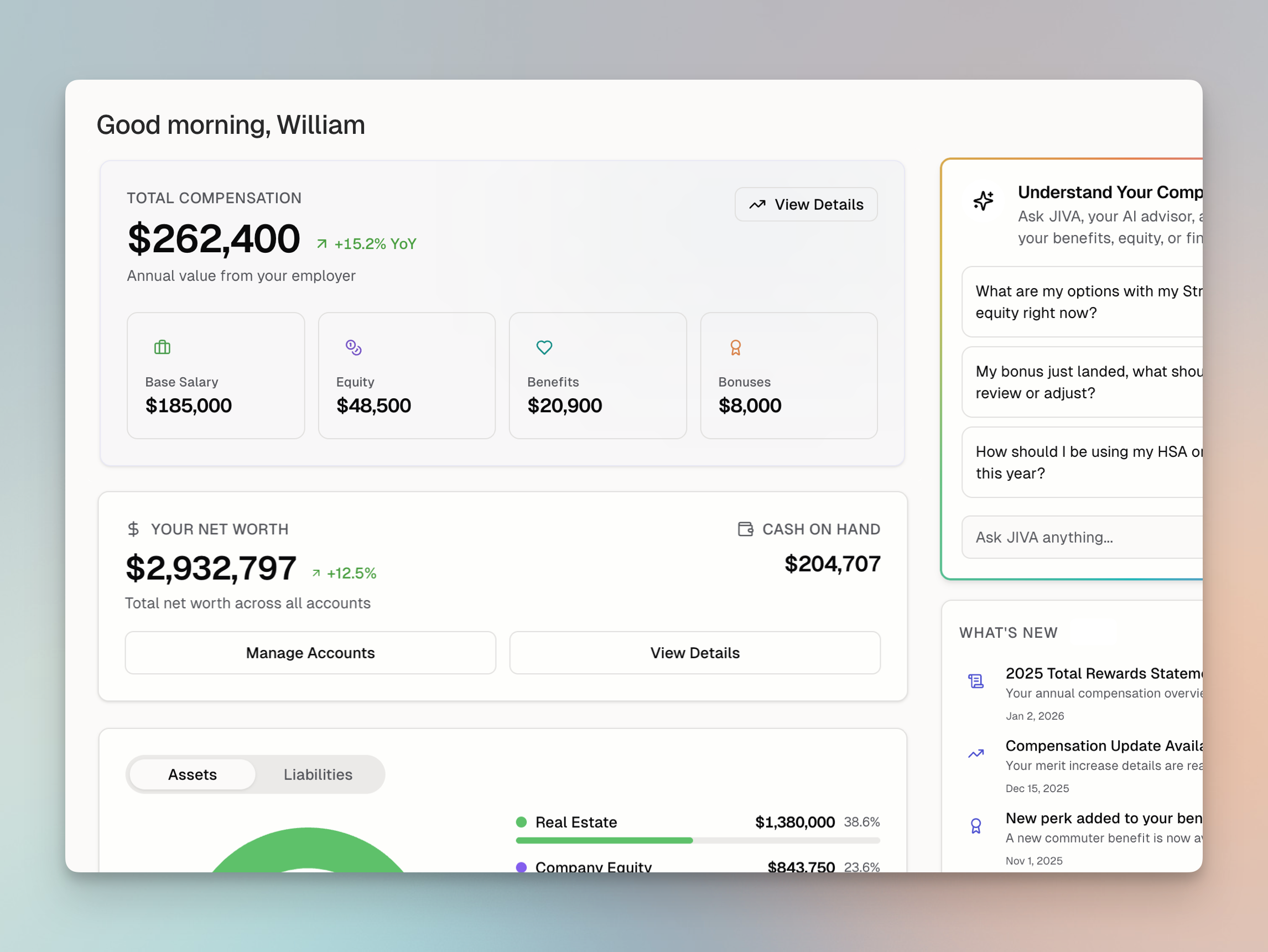 See your total pay, equity, and benefits in one place. Understand what you have, what it’s worth, and what to do with it.